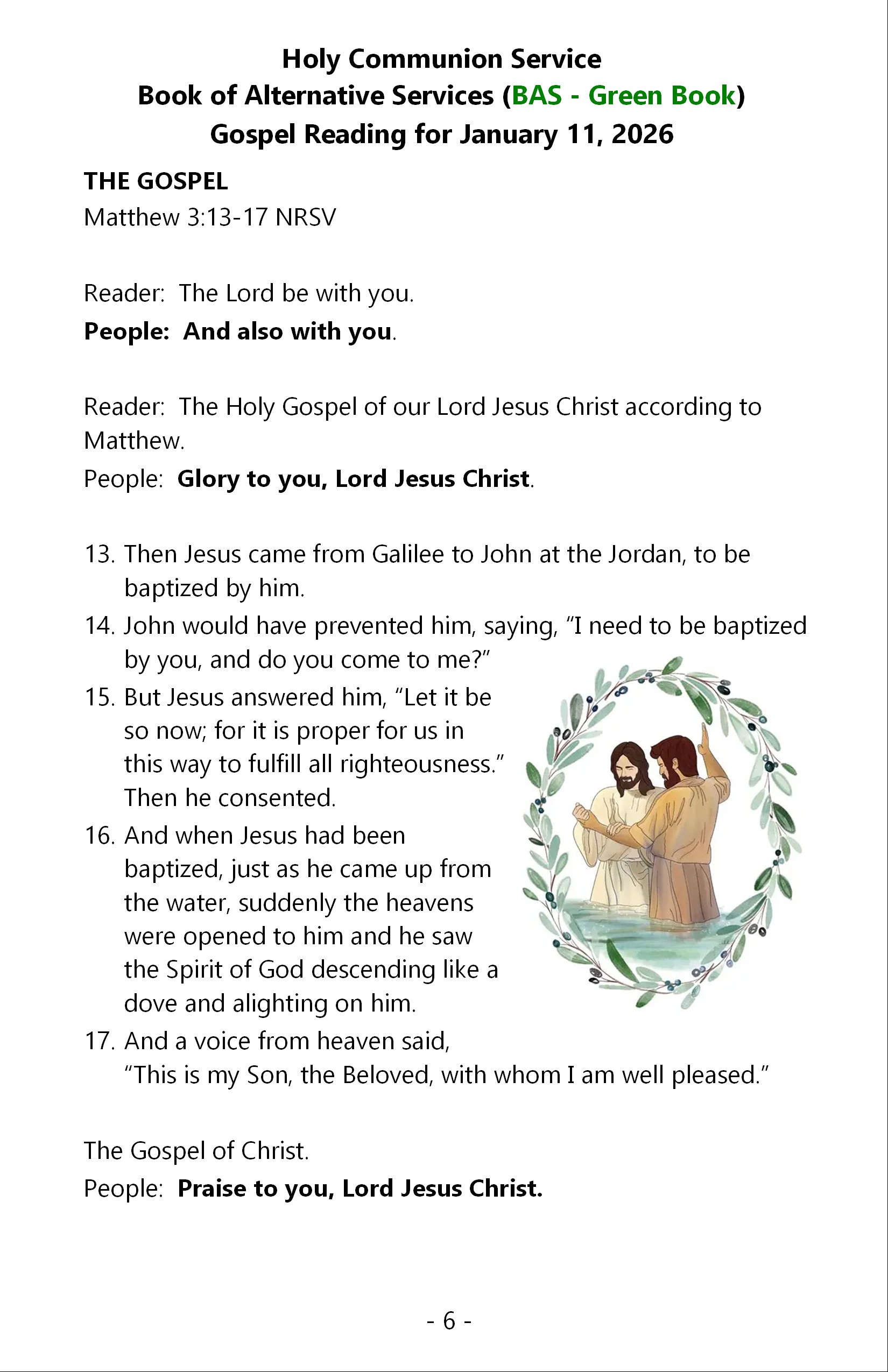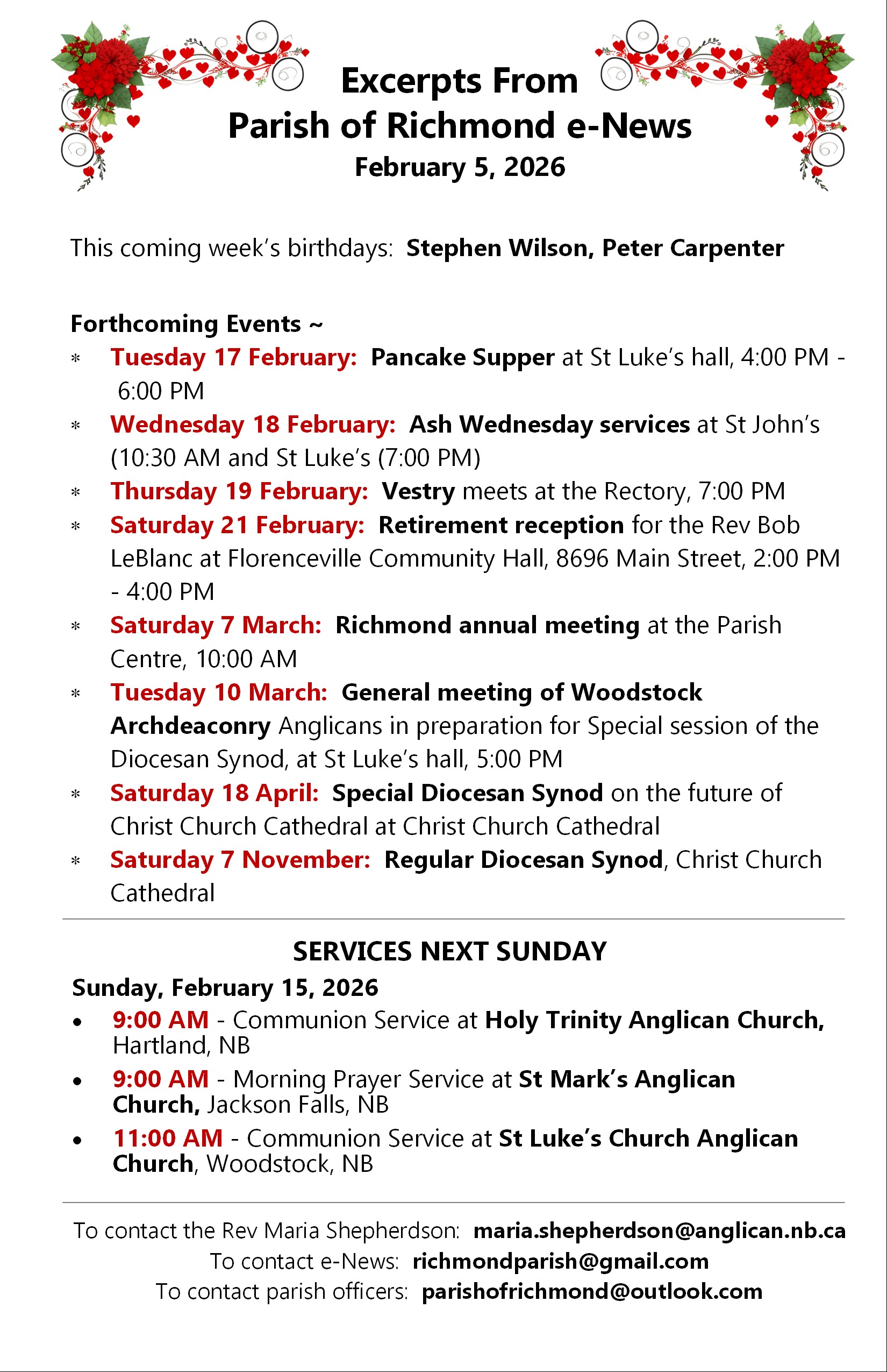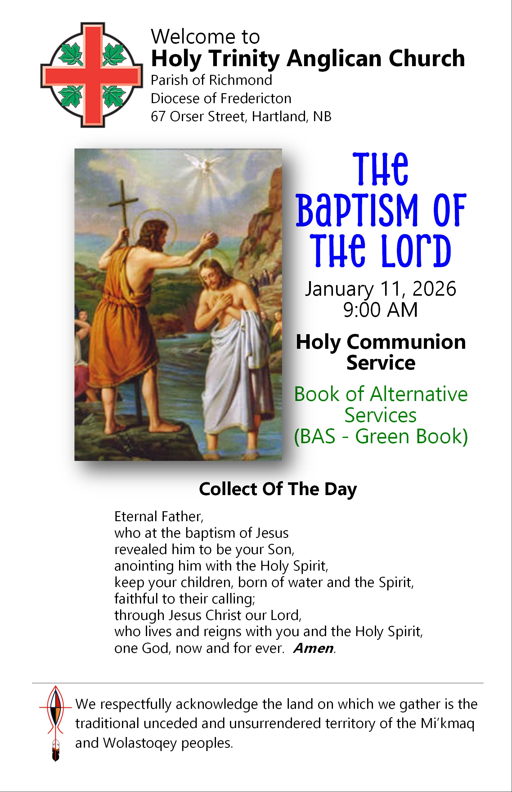The Parish of Richmond bulletin for Sunday, January 11, 2026 is below. It contains eight pages. Click or tap on an image to load an expanded view in a new webpage.
