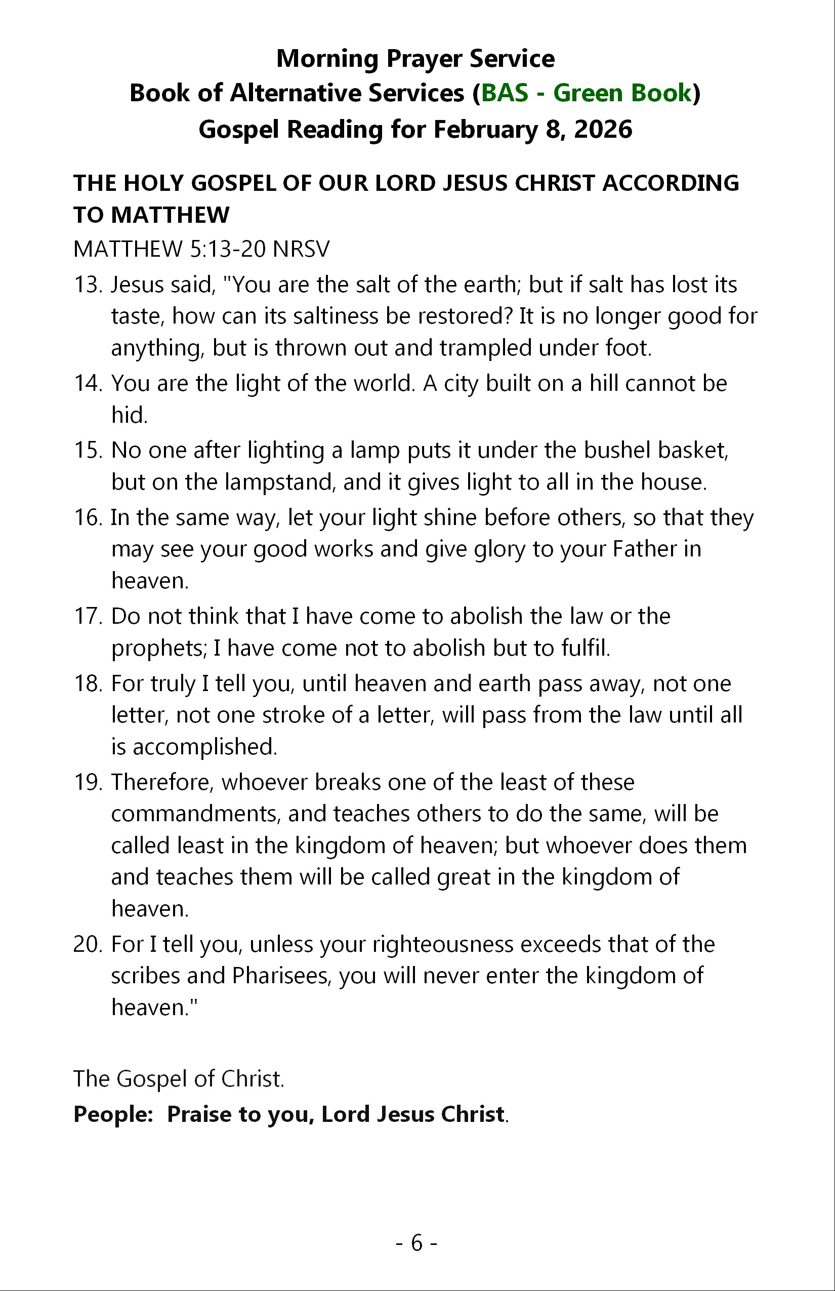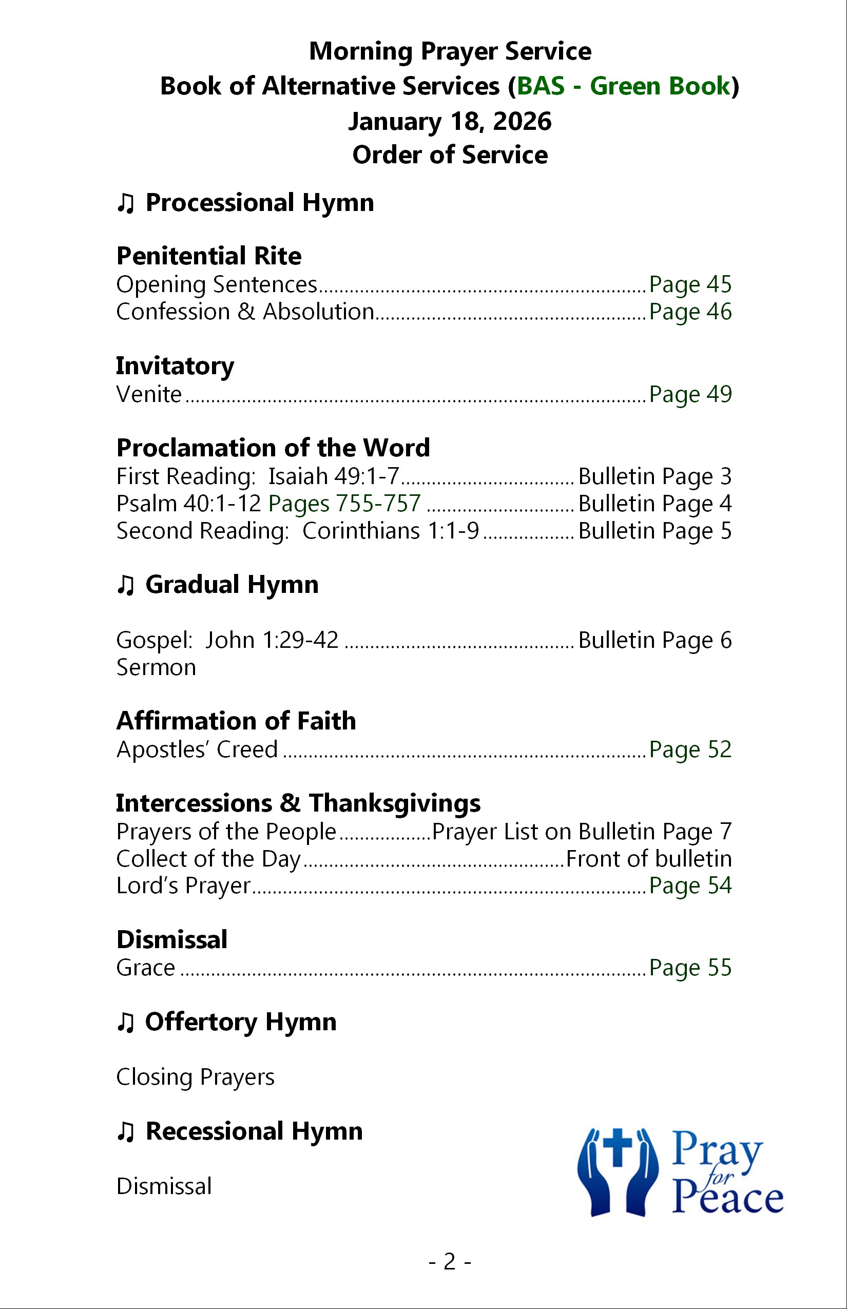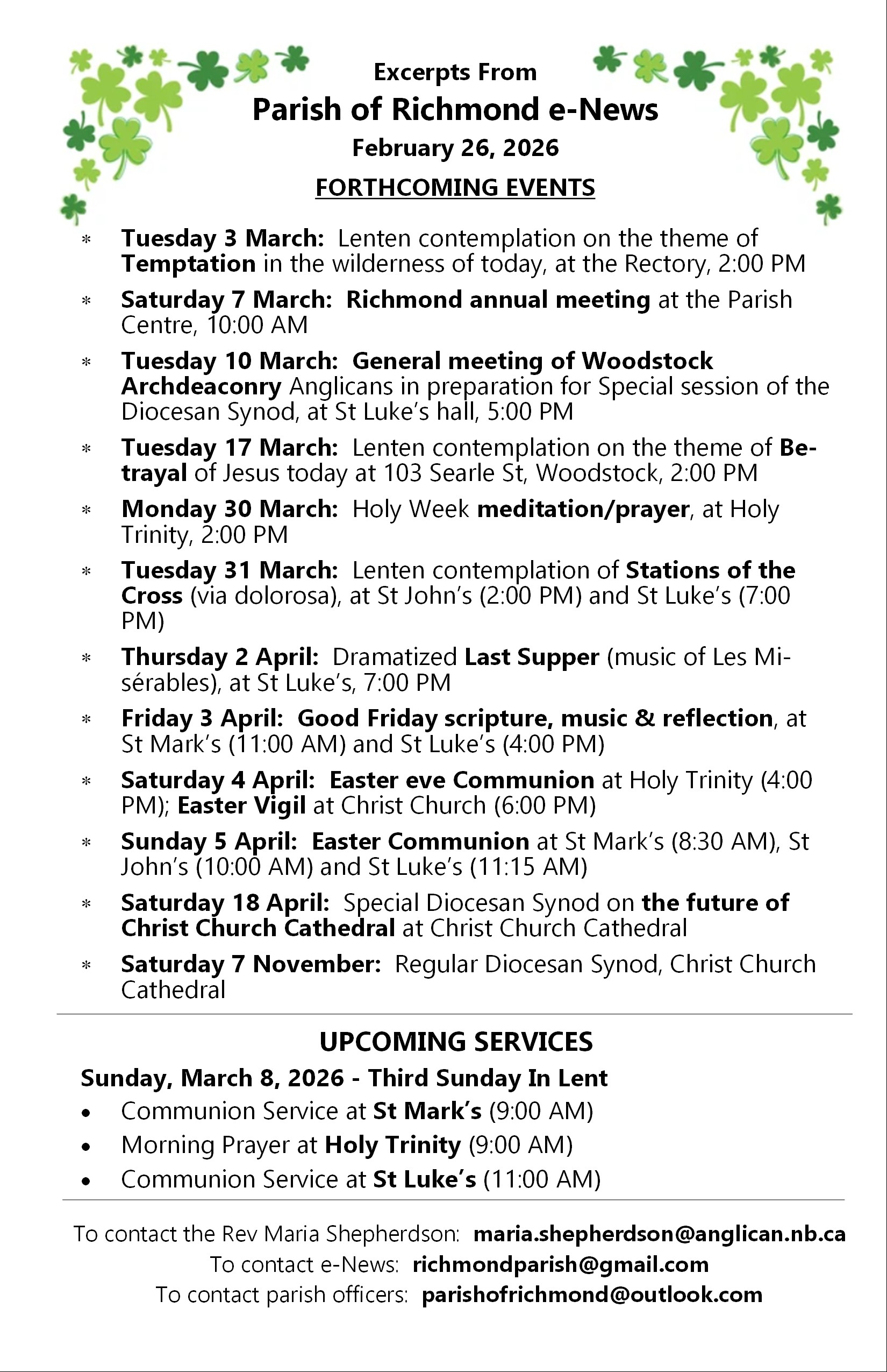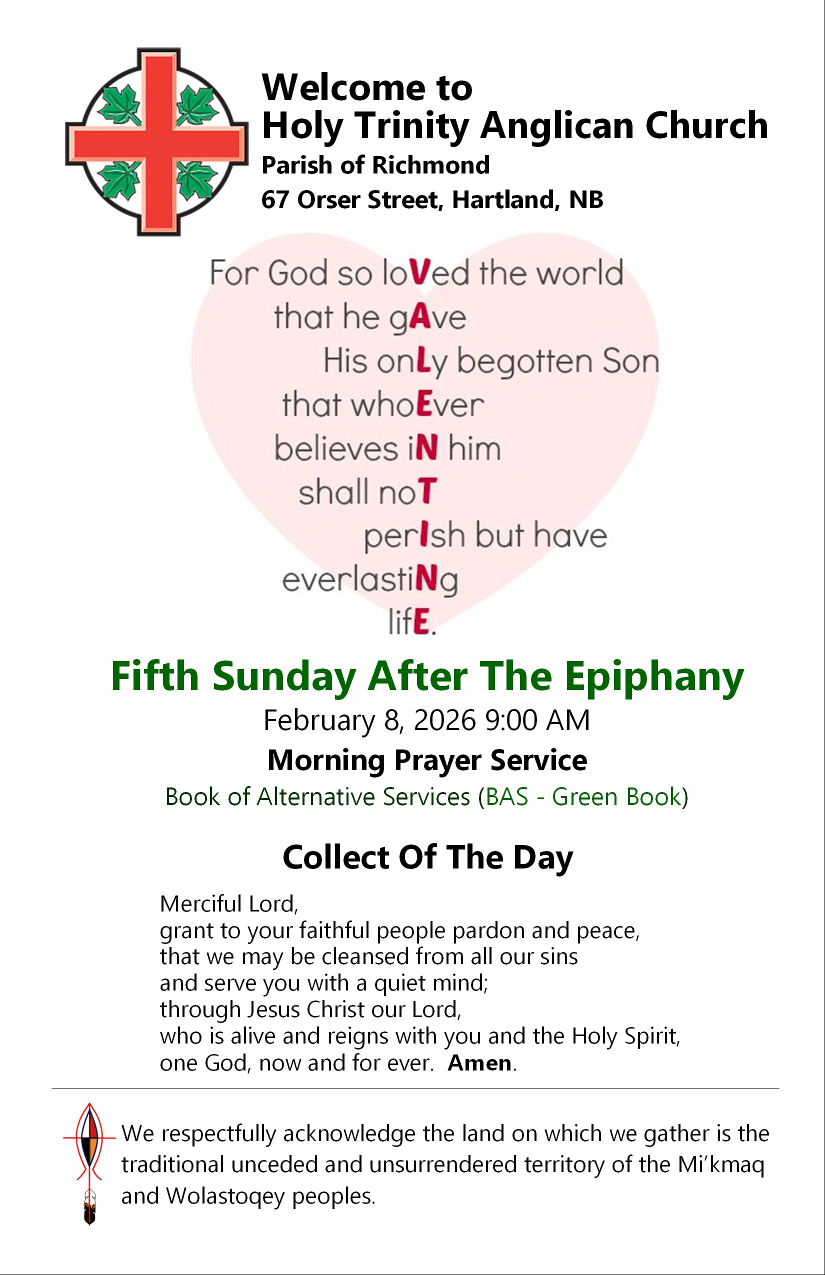 The Parish of Richmond bulletin for Sunday, January 11, 2026 is below. It contains eight pages. Click or tap on an image to load an expanded view in a new webpage.