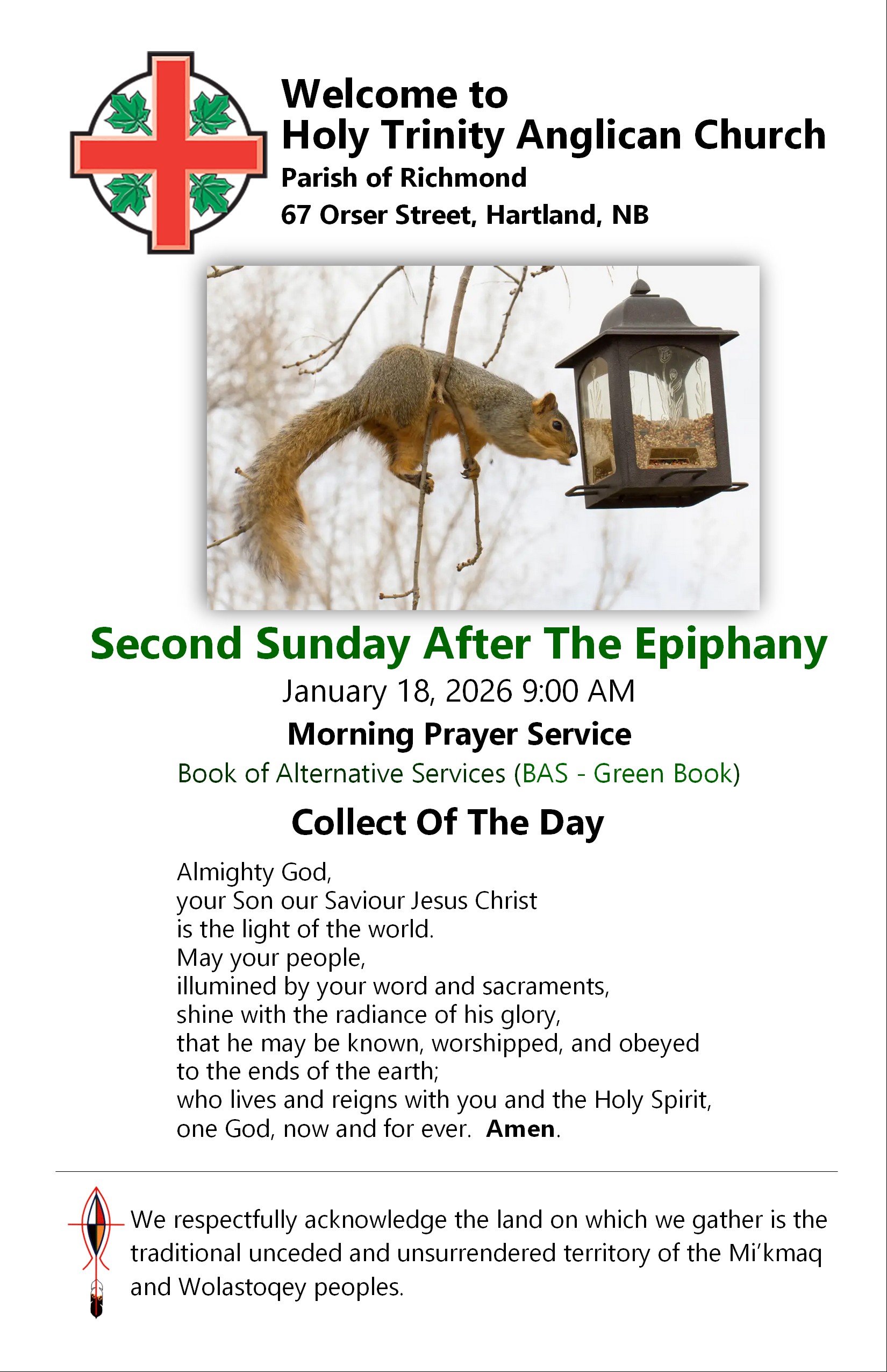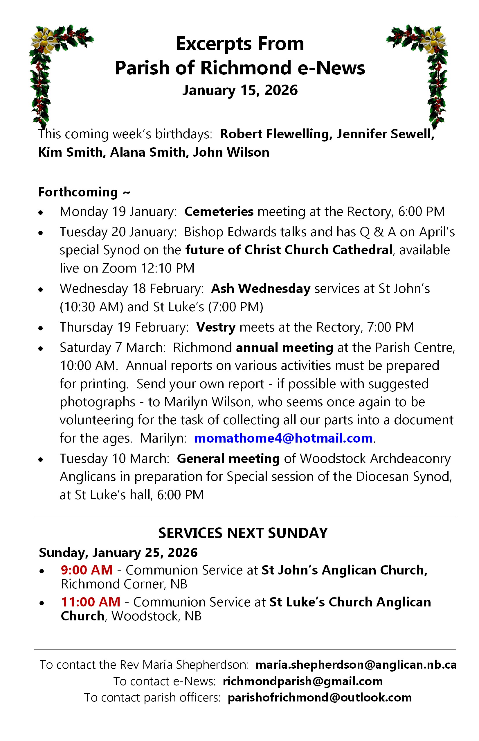 The Parish of Richmond bulletin for Sunday, January 11, 2026 is below. It contains eight pages. Click or tap on an image to load an expanded view in a new webpage.
